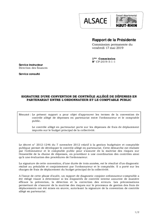Le présent rapport a pour objet d’approuver les termes de la convention de contrôle allégé de dépenses en partenariat entre l’ordonnateur et le comptable public. Le contrôle allégé en partenariat porte sur les dépenses de frais de déplacement imputés sur le budget principal de la collectivité.