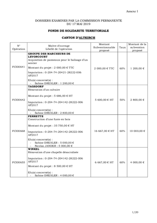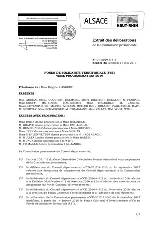 FONDS DE SOLIDARITE TERRITORIALE (FST)4EME PROGRAMMATION 2019