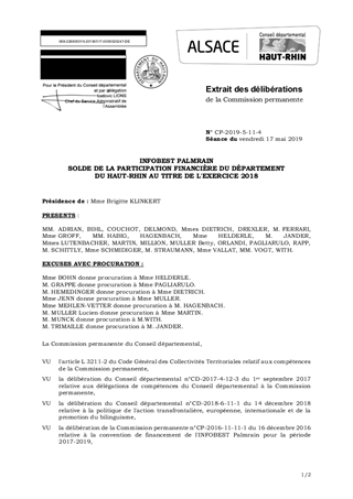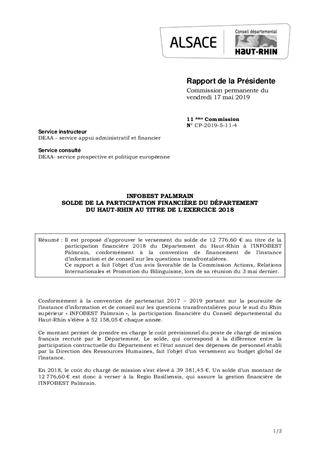 INFOBEST PALMRAINSOLDE DE LA PARTICIPATION FINANCIÈRE DU DÉPARTEMENT DU HAUT-RHIN AU TITRE DE L'EXERCICE 2018