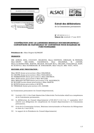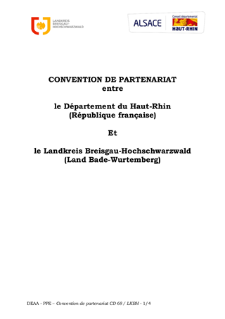 COOPÉRATION AVEC LE LANDKREIS BREISGAU-HOCHSCHWARZWALD : CONVENTIONS DE PARTENARIAT ET CONVENTION POUR ÉCHANGES DE FONCTIONNAIRES