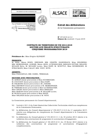 Il est proposé d’approuver la cinquième programmation pour l’année 2019 des aides à attribuer aux projets structurants inscrits dans les Contrats de Territoire de Vie (CTV) 2014-2019. Un projet structurant du Territoire de Vie Colmar Fecht et Ried est concerné pour une aide départementale de 400 000 €. Ce rapport a fait l’objet d’un avis favorable de la Commission Patrimoine Immobilier, Actions et Territoires lors de sa réunion du 24 mai 2019.