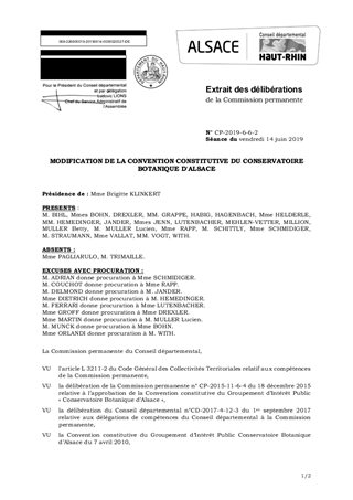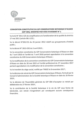 MODIFICATION DE LA CONVENTION CONSTITUTIVE DU CONSERVATOIRE BOTANIQUE D'ALSACE