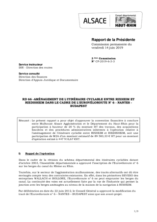 RD 66 -AMÉNAGEMENT DE L'ITINÉRAIRE CYCLABLE ENTRE RIXHEIM ET RIEDISHEIM DANS LE CADRE DE L'EUROVÉLOROUTE N° 6 - NANTES -BUDAPEST