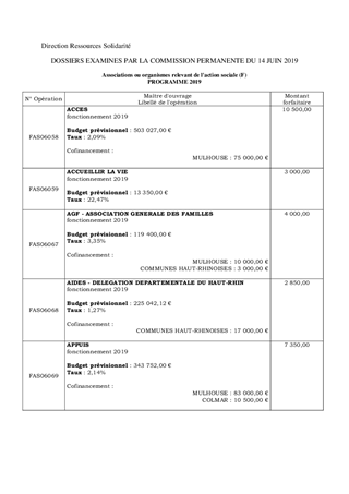 SUBVENTIONS 2019 AUX ASSOCIATIONS OU ORGANISMES RELEVANT DE LA POLITIQUE SOLIDARITE, FAMILLE, INSERTION ET LOGEMENT POUR UN MONTANT DE 673 446 EUROS