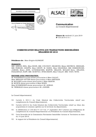 COMMUNICATION RELATIVE AUX TRANSACTIONS IMMOBILIÈRES RÉALISÉES EN 2018