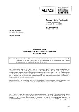 COMMUNICATIONGESTION DE LA DETTE DEPARTEMENTALEEXERCICE 2018