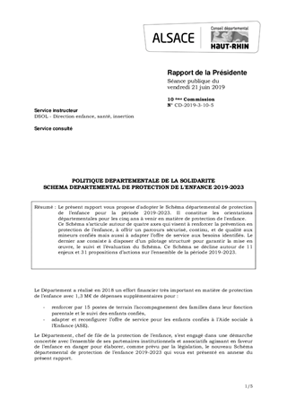 POLITIQUE DEPARTEMENTALE DE LA SOLIDARITESCHEMA DEPARTEMENTAL DE PROTECTION DE L'ENFANCE 2019-2023