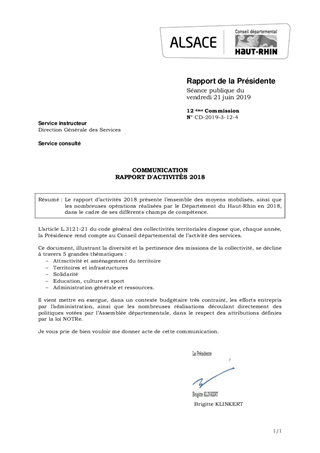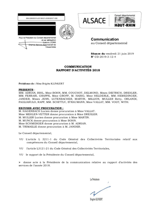 Le rapport d’activités 2018 présente l’ensemble des moyens mobilisés, ainsi que les nombreuses opérations réalisées par le Département du Haut-Rhin en 2018, dans le cadre de ses différents champs de compétence.