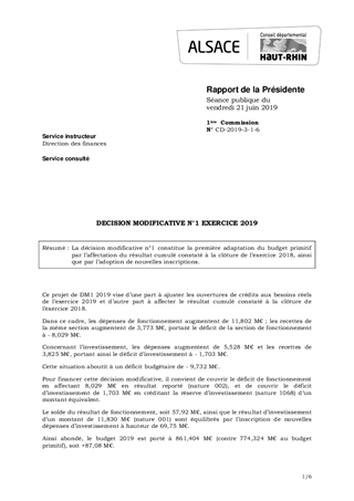 DECISION MODIFICATIVE N°1 EXERCICE 2019