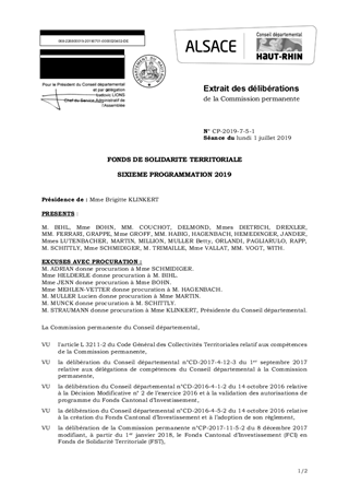 FONDS DE SOLIDARITE TERRITORIALESIXIEME PROGRAMMATION 2019