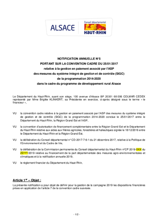 FINANCEMENT DE LA PART DEPARTEMENTALEDES MESURES AGRO-ENVIRONNEMENTALES ET CLIMATIQUESNOTIFICATION ANNUELLE 2019