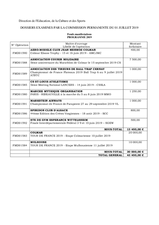 POLITIQUE EN FAVEUR DU SPORTFONDS D'AIDE A L'ORGANISATION DE MANIFESTATIONS SPORTIVESET TOUR DE FRANCE 2019CINQUIEME LISTE