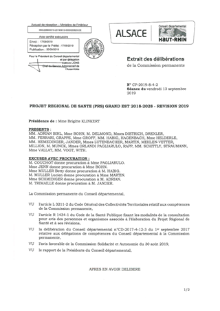 Le Projet Régional de Santé Grand Est 2018-2028 fait l’objet d’une première révision, motivée par une meilleure intégration des orientations de « Ma santé 2022 », en particulier l’introduction de la notion « d’hôpitaux de proximité » et leur articulation avec les Communautés Professionnelles Territoriales de Santé. Il propose des évolutions d’Objectifs Quantifiés de l’Offre de Soins permettant, notamment, d’augmenter l’accès aux équipements matériels lourds et à la psychiatrie infanto-juvénile. Le rapport a pour objet de rendre un avis circonstancié sur ce document, qui sera arrêté par l’ARS Grand Est en novembre 2019.