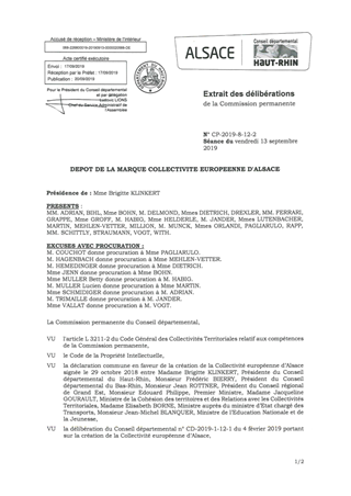DEPOT DE LA MARQUE COLLECTIVITE EUROPEENNE D'ALSACE