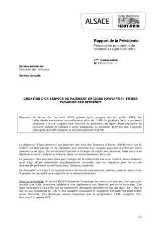 CREATION D'UN SERVICE DE PAIEMENT EN LIGNE PAYFIP/TIPI TITRES PAYABLES PAR INTERNET