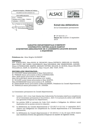 GARANTIE DEPARTEMENTALE D'EMPRUNTCOOPERATIVE CENTRE-ALSACE HABITATACQUISITION-AMELIORATION DE 5 LOGEMENTS LOCATIFS SOCIAUXA RIQUEWIHR