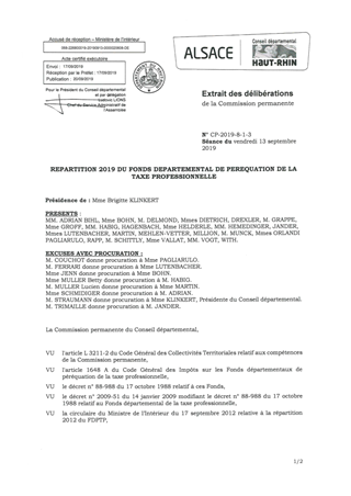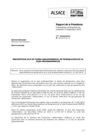 REPARTITION 2019 DU FONDS DEPARTEMENTAL DE PEREQUATION DE LA TAXE PROFESSIONNELLE