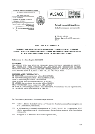 LIEU - DIT PONT D'ASPACHCONVENTION RELATIVE AUX MODALITES D'ENTRETIEN DU DOMAINE PUBLIC ROUTIER DEPARTEMENTAL - ZONE AMENAGEE ENTRE LES RD 483 ET RD 26 EN AGGLOMERATION DE BURNHAUPT-LE-HAUT.
