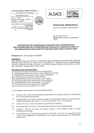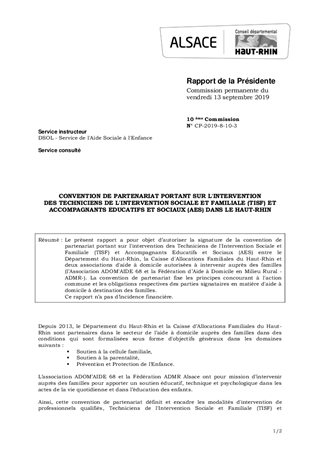 CONVENTION DE PARTENARIAT PORTANT SUR L'INTERVENTIONDES TECHNICIENS DE L'INTERVENTION SOCIALE ET FAMILIALE (TISF) ET ACCOMPAGNANTS EDUCATIFS ET SOCIAUX (AES) DANS LE HAUT-RHIN