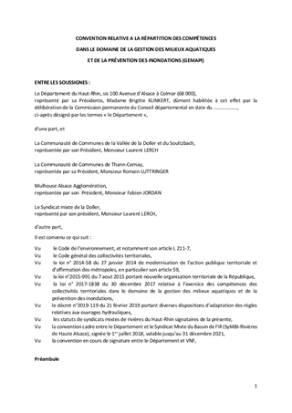CONVENTION AVEC LES SYNDICATS DE RIVIÈRES POUR LA COMPÉTENCE GEMAPI