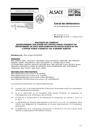 POLITIQUE DE L'HABITAT REGROUPEMENT PAR FUSION DE L'OFFICE PUBLIC D'HABITAT DU DÉPARTEMENT DU HAUT-RHIN HABITATS DE HAUTE-ALSACE ET DE L'OFFICE PUBLIC D'HABITAT VAL D'ARGENT HABITAT