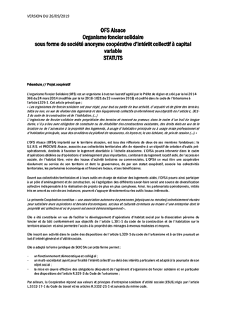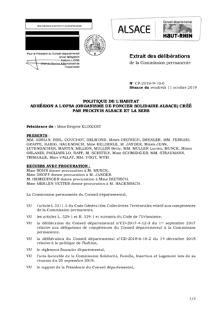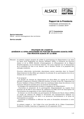 POLITIQUE DE L'HABITATADHÉSION A L'OFSA (ORGANISME DE FONCIER SOLIDAIRE ALSACE) CRÉÉ PAR PROCIVIS ALSACE ET LA SERS