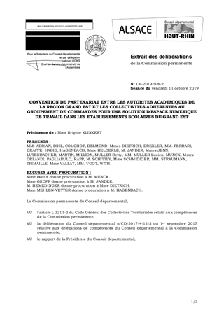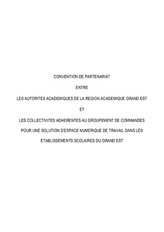 CONVENTION DE PARTENARIAT ENTRE LES AUTORITES ACADEMIQUES DE LA REGION GRAND EST ET LES COLLECTIVITES ADHERENTES AU GROUPEMENT DE COMMANDES POUR UNE SOLUTION D'ESPACE NUMERIQUE DE TRAVAIL DANS LES ETABLISSEMENTS SCOLAIRES DU GRAND EST