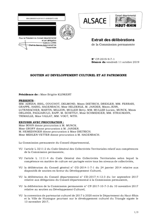 Le présent rapport propose, au titre du soutien au développement culturel et au patrimoine, d’attribuer et d'autoriser le versement de subventions de fonctionnement et d'une participation statutaire pour un montant total de 420 170 €. Il est également proposé de verser une cotisation de 700 € en faveur de l'Association Tôt ou T'Art ainsi que d’approuver et d'autoriser la signature des conventions à intervenir avec les structures culturelles mentionnées dans le rapport. Ces dossiers ont fait l’objet d’un avis favorable de la Commission de la Culture et du Patrimoine réunie les 28 juin 2019 et 13 septembre 2019.