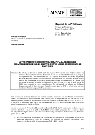 APPROBATION DU REFERENTIEL RELATIF A LA PROCEDURE DEPARTEMENTALE POUR LA CREATION D'UNE MICRO-CRECHE DANS LE HAUT-RHIN