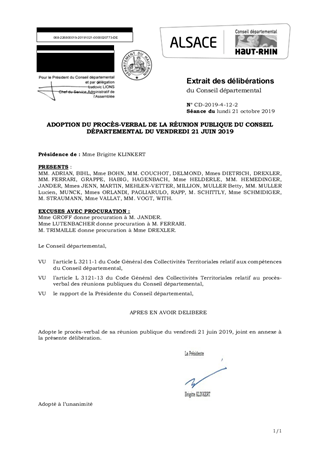 ADOPTION DU PROCÈS-VERBAL DE LA RÉUNION PUBLIQUE DU CONSEIL DÉPARTEMENTAL DU VENDREDI 21 JUIN 2019