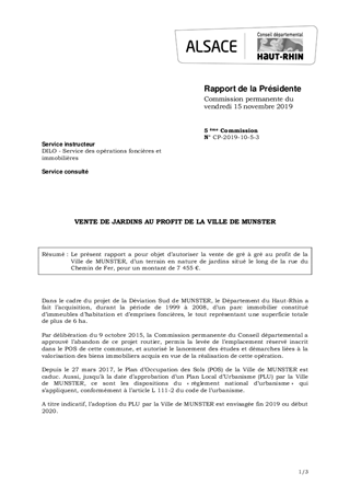 VENTE DE JARDINS AU PROFIT DE LA VILLE DE MUNSTER