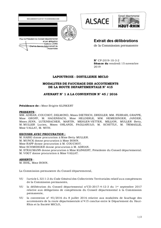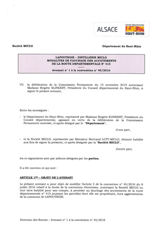 LAPOUTROIE - DISTILLERIE MICLOMODALITES DE FAUCHAGE DES ACCOTEMENTSDE LA ROUTE DEPARTEMENTALE N° 415AVENANT N° 1 A LA CONVENTION N° 45 / 2016