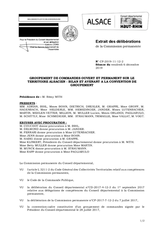 GROUPEMENT DE COMMANDES OUVERT ET PERMANENT SUR LE TERRITOIRE ALSACIEN - BILAN ET AVENANT A LA CONVENTION DE GROUPEMENT