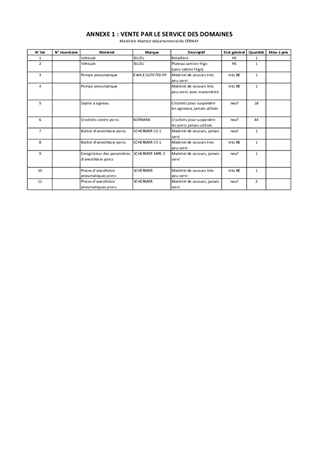 ABATTOIR DEPARTEMENTAL DE CERNAYALIENATION DE VEHICULES ET MATERIELS REFORMES