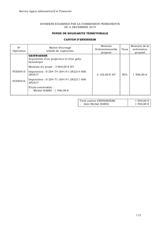 Il est proposé d’approuver la dixième programmation pour l’année 2019 des aides à attribuer à deux projets dans le cadre du Fonds de Solidarité Territoriale (FST), pour un montant total de 2 796 €. Ce rapport a fait l’objet d’un avis favorable de la Commission Patrimoine Immobilier, Actions et Territoires réunie le 22 novembre 2019.