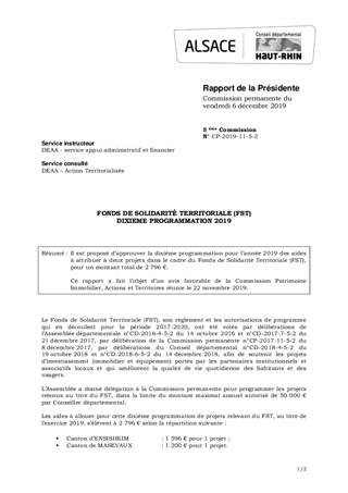 FONDS DE SOLIDARITÉ TERRITORIALE (FST)DIXIEME PROGRAMMATION 2019