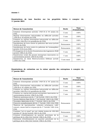 TAUX DE FISCALITÉ LOCALE ET EXONÉRATIONS FISCALES POUR L'ANNÉE 2020