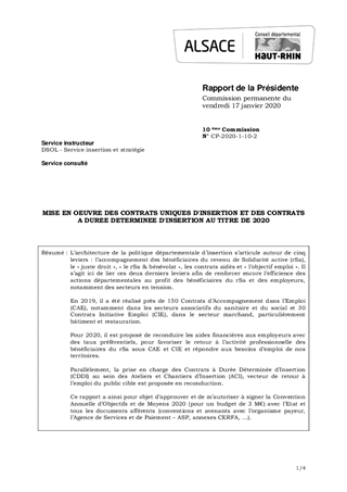 MISE EN OEUVRE DES CONTRATS UNIQUES D'INSERTION ET DES CONTRATS A DUREE DETERMINEE D'INSERTION AU TITRE DE 2020