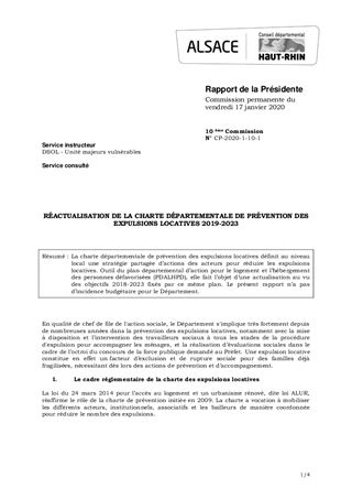 RÉACTUALISATION DE LA CHARTE DÉPARTEMENTALE DE PRÉVENTION DES EXPULSIONS LOCATIVES 2019-2023