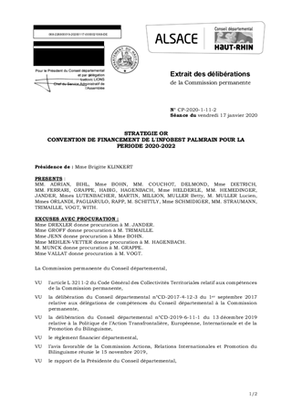 STRATEGIE ORCONVENTION DE FINANCEMENT DE L'INFOBEST PALMRAIN POUR LA PERIODE 2020-2022