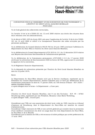 ATTRIBUTION D'UNE SUBVENTION DE FONCTIONNEMENT POUR L'INSTITUT DU DROIT LOCAL ALSACIEN MOSELLAN POUR 2020