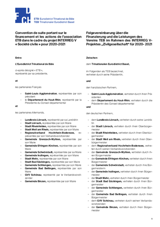 STRATEGIE OR CONVENTION 2020-2021 SUR LE FINANCEMENT ET LES ACTIONS DE L'EURODISTRICT DE BALE DANS LE CADRE DE LA PROLONGATION DU PROJET SOCIETE CIVILE