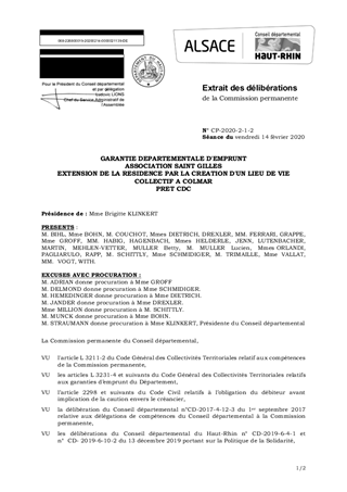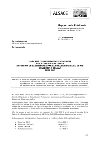 GARANTIE DEPARTEMENTALE D'EMPRUNT ASSOCIATION SAINT GILLES EXTENSION DE LA RESIDENCE PAR LA CREATION D'UN LIEU DE VIE COLLECTIF A COLMAR PRET CDC