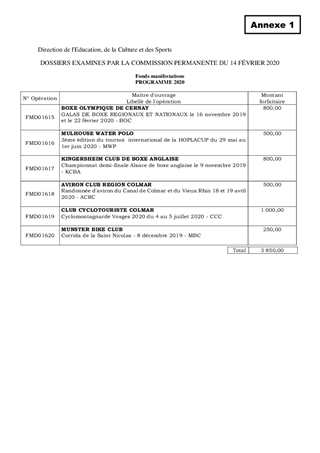 POLITIQUE EN FAVEUR DU SPORT FONDS D'AIDE A L'ORGANISATION DE MANIFESTATIONS SPORTIVES PREMIERE LISTE