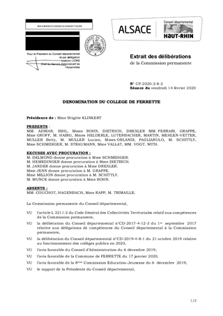 DENOMINATION DU COLLEGE DE FERRETTE