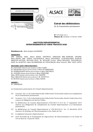 Le fonctionnement de l'abattoir départemental de proximité de CERNAY est assuré par une société d'exploitation dans le cadre d'une Délégation de Service Public. Ce contrat stipule que les travaux d'investissement et de gros entretien sont à la charge du Département. Lors de la Commission Consultative de l'abattoir du 3 décembre 2019 et de la Commission de l’Agriculture, de l’Environnement et du Cadre de Vie du 10 janvier 2020, il a été décidé de concentrer les investissements 2020 sur les travaux d’aménagement des locaux dédiés aux vétérinaires, à l’aménagement du local de pré-traitement et la programmation de l'extension de l'abattoir (atelier de fabrication, optimisation des espaces disponibles voire agrandissement des capacités frigorifiques).