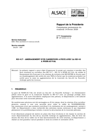 RD 417 - AMENAGEMENT D'UN CARREFOUR A FEUX AVEC LA RD 43 A WIHR-AU-VAL
