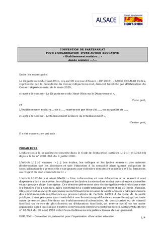 CONVENTION DE PARTENARIATPOUR L'ORGANISATION D'ACTIONS EDUCATIVESDANS LES ETABLISSEMENTS SCOLAIRES HAUT-RHINOIS