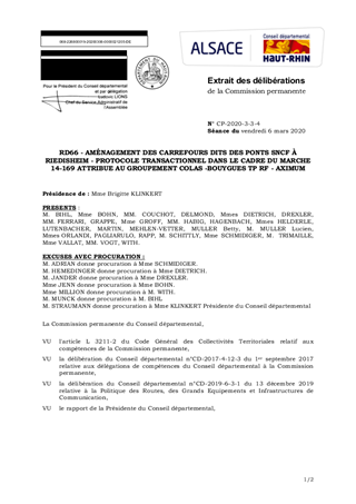 RD66 - AMÉNAGEMENT DES CARREFOURS DITS DES PONTS SNCF À RIEDISHEIM - PROTOCOLE TRANSACTIONNEL DANS LE CADRE DU MARCHE 14-169 ATTRIBUE AU GROUPEMENT COLAS -BOUYGUES TP RF - AXIMUM