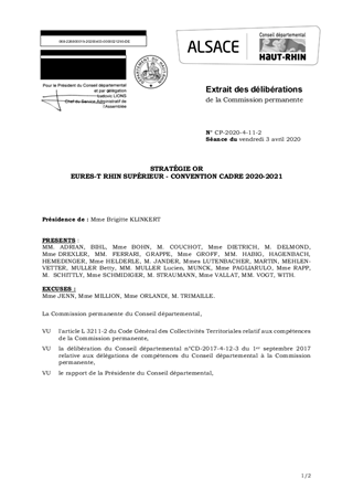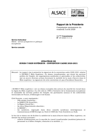 STRATÉGIE OREURES-T RHIN SUPÉRIEUR - CONVENTION CADRE 2020-2021